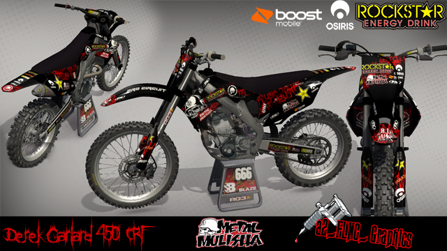 This is the 450CRF Metal Mulisha used by Derek Garland.