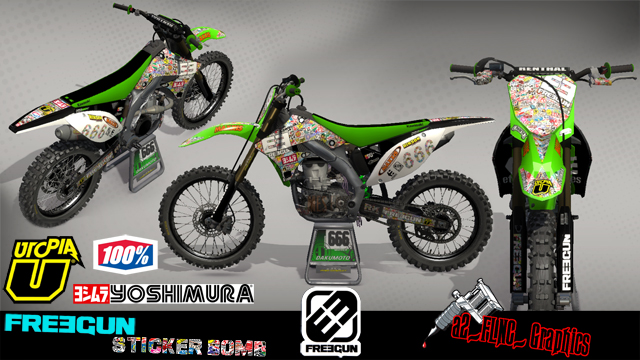 This is an imagined stickers bomb Kawasaki to complete my FMX pack.