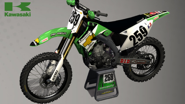 This is a replica of James Stewarts Team Chevy Trucks KX 125. This is for DLC slot 16. Now for all Kawasaki Bikes.