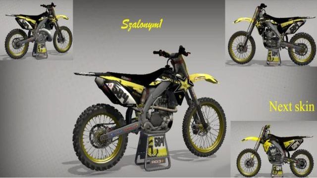 Hi guys. I present my first bike from mx reflex. Rockstar Suzuki rmz 450 and rm 250 . My old nick on mxmaniacs and mcmfactory is rmz2504. My new nick on steam: szalonym1 . Slot: DLC 16. My next skin is new version my old bike from mva it's monster suzuki. Sorry for my bad english.