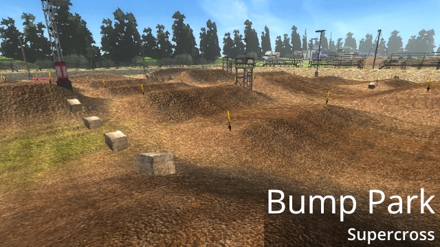 Bump Park includes a national and a supercross track. Both tracks are raceable but each version can be downloaded sperately, also Freeride version is available. This one is the Supercross version. The Track uses Supercross Beta Slot 3.
